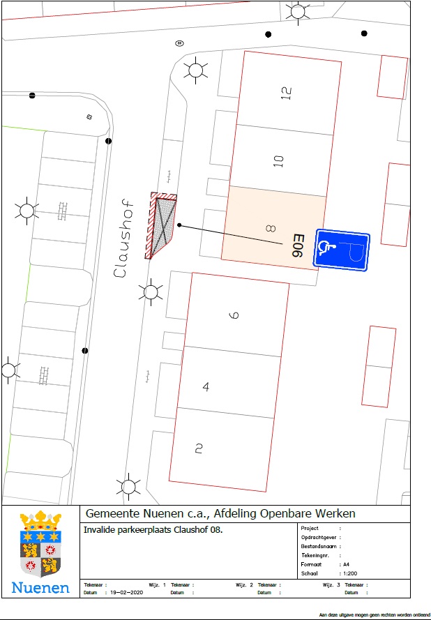 Uit het oogpunt van het waarborgen van de bruikbaarheid van de weg is het gewenst in de Claushof te Nuenen een gereserveerde gehandicaptenparkeerplaats aan te leggen voor een bewoner van Claushof.