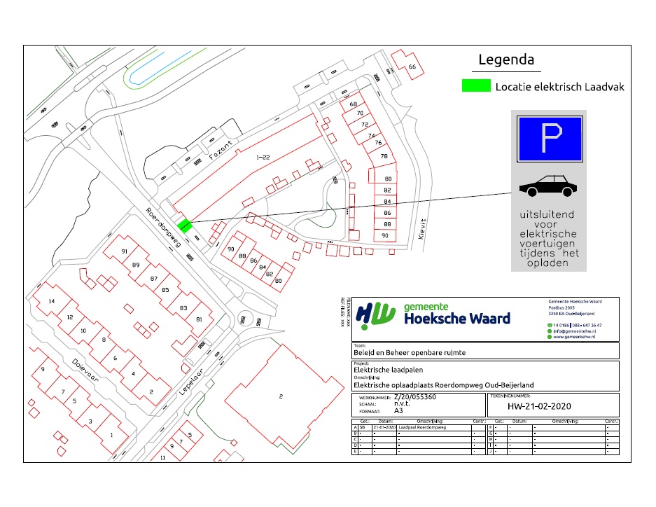 een aanvraag is ingediend door de bewoners uit de omgeving van de Roerdompweg in Oud-Beijerland voor het aanwijzen van een parkeerlocatie voor het uitsluitend opladen van elektrische voertuigen;