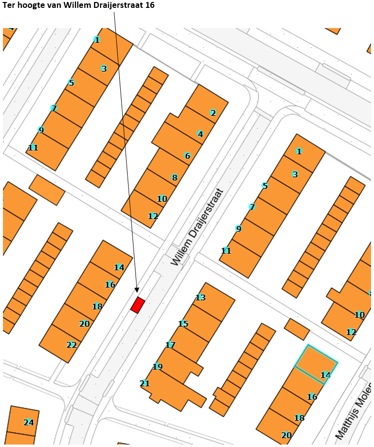 Het aanwijzen van een gehandicaptenparkeerplaats op kenteken ter hoogte van Willem Draijerstraat 16 door het plaatsen van een bord model E6 (RVV 1990 bijlage 1) voorzien van een onderbord met daarop het kenteken van het voertuig dat in gebruik is bij/ten behoeve van de aanvrager.