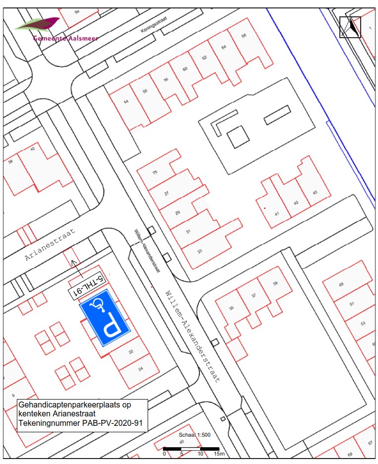 Burgemeester en wethouders van Aalsmeer besluiten het parkeren te verbieden op een parkeerplaats in de Arianestraat, zoals aangegeven op tekening PAB-PV-2020-91, met uitzondering van het voertuig met het kenteken 5-THL-91 (gehandicaptenparkeerplaats).