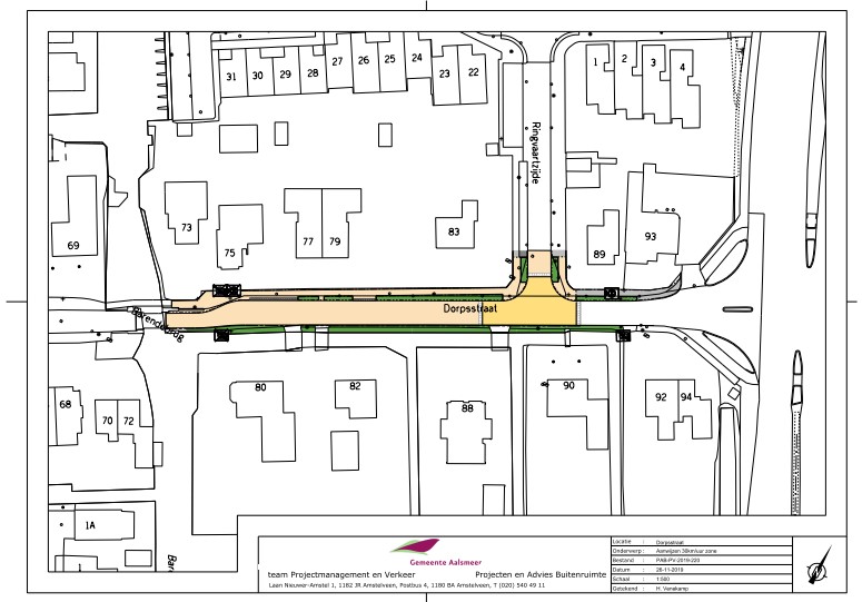 Burgemeester en wethouders van Aalsmeer besluiten het gedeelte van de Dorpsstraat tussen de Barendebrug en de Burgemeester Kasteleinweg en Ringvaartzijde aan te wijzen als 30 km/uurzone.