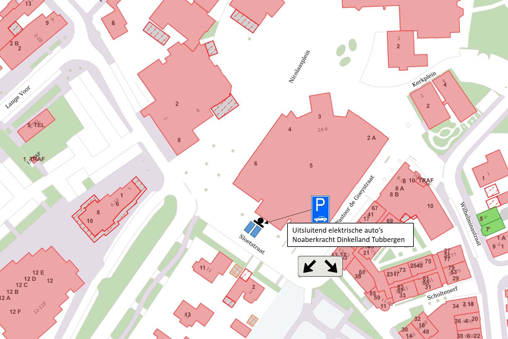 De gemeente Dinkelland wil zelf ook bijdragen aan de ontwikkeling van Elektrisch Vervoer en wil daarom ook het vervoer van Noaberkracht verduurzamen. Om die reden wordt aan de Sloetstraat twee parkeerplaatsen gerealiseerd voor elektrische gemeentelijke auto’s van Noaberkracht Dinkelland Tubbergen .
