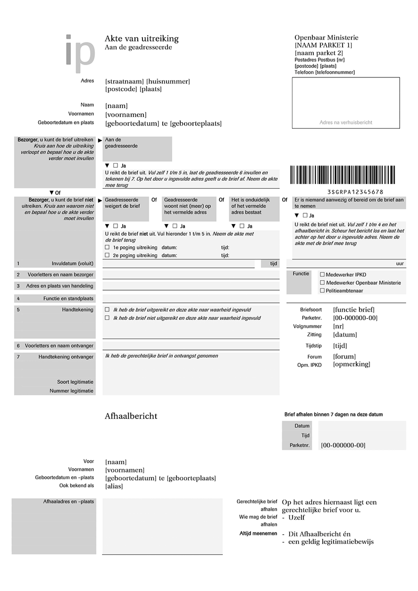 Artikel 1, derde lid, bevat een voorschrift voor het geval de identiteit van de persoon aan wie de gerechtelijke mededeling is uitgereikt, wordt vastgesteld conform artikel 36h, derde lid, Sv. In dat geval wordt het nummer van het identiteitsbewijs en het type identiteitsbewijs genoteerd op de akte van uitreiking. De ontvanger wordt verzocht om een identiteitsbewijs, maar is niet verplicht tot legitimatie.