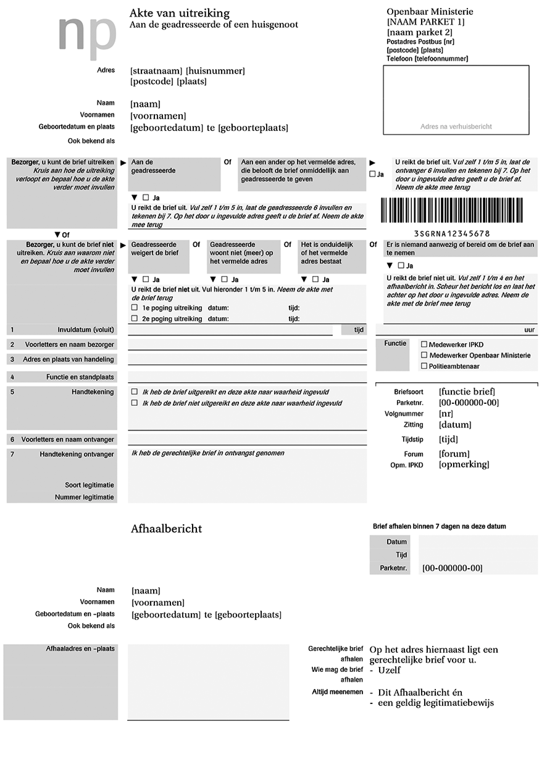 Artikel 36h, vijfde lid, Sv regelt de akte die wordt opgemaakt van de betekening van een gerechtelijke mededeling middels uitreiking. Met onderhavige regeling worden de modellen van de akte van uitreiking vastgesteld en nadere voorschriften hieromtrent gesteld.