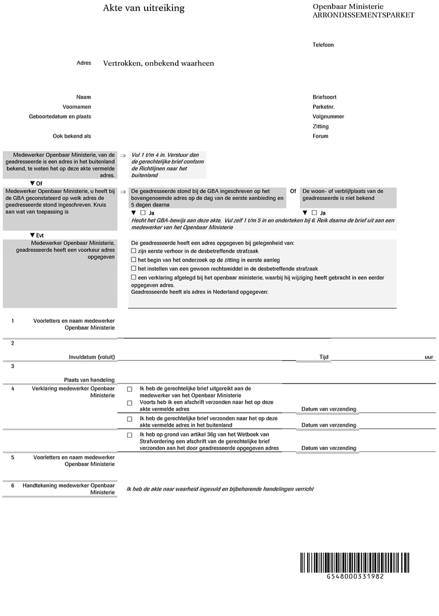 2. Voor de uitreiking aan het openbaar ministerie, bedoeld in de artikelen 36e, tweede lid, onderdeel b, en 36l, vierde lid, van het Wetboek van Strafvordering, kan worden volstaan met toezending van de mededeling of een afschrift van de mededeling aan het desbetreffende arrondissementsparket.