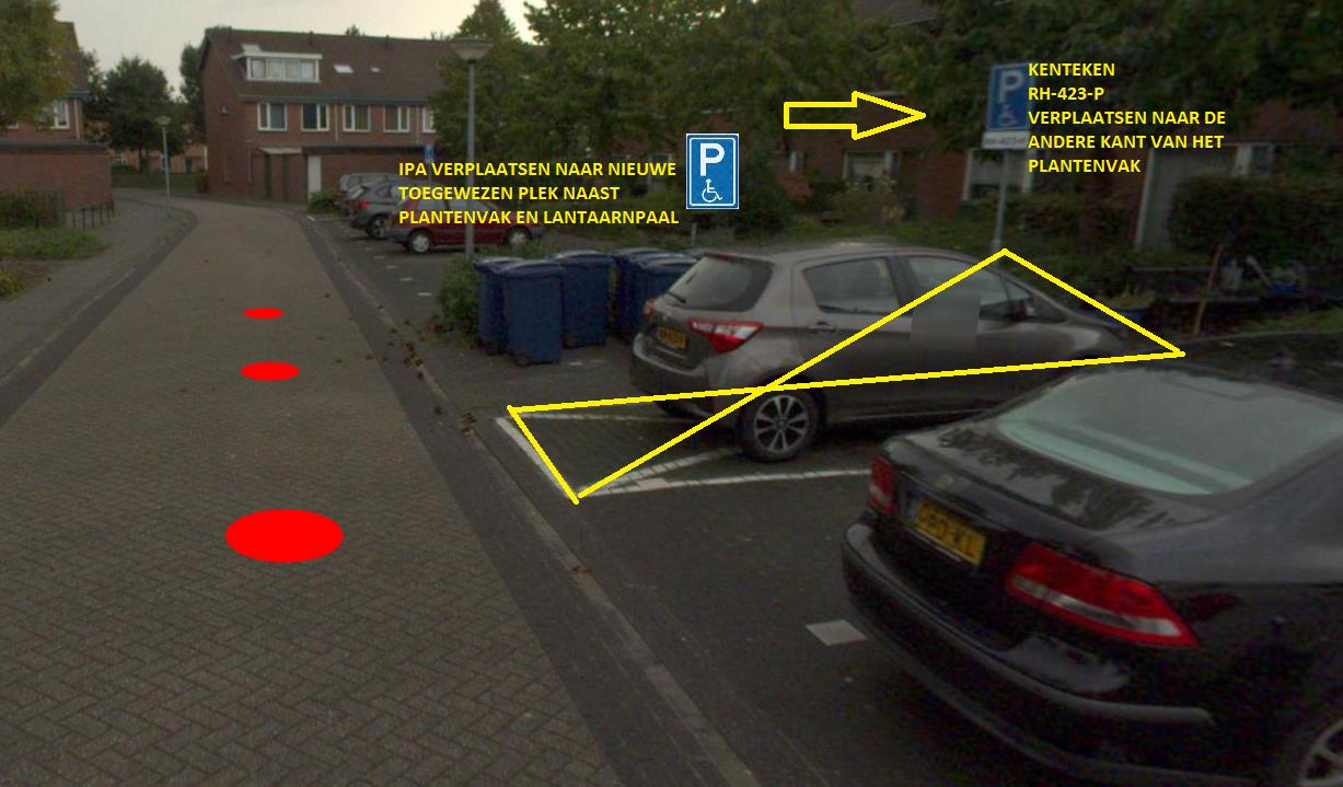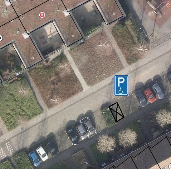 een gehandicaptenparkeerplaats op kenteken te realiseren. De aanwijzing van de gehandicaptenparkeerplaats zal bewerkstelligd worden door het plaatsen van het verkeersbord E6 en onderbord OB309. Het plaatsen van dit bord zal ervoor zorgen dat de parkeerplaats gereserveerd is voor het voertuig met het desbetreffende kenteken.
