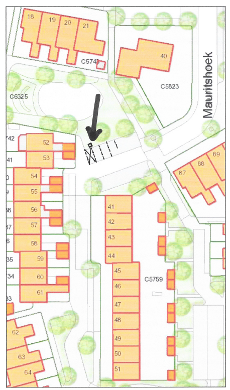 Het plaatsen van een oplaadpaal voor elektrische voertuigen en het in gebruik geven van een parkeervak aan de Mauritshoek ter hoogte van achterkant woning nummer 53., uitsluitend voor het opladen van elektrische voertuigen door het plaatsen van het verkeersbord E04 met onderbord “opladen elektrische voertuigen” en het aanbrengen van bijbehorende belijning.