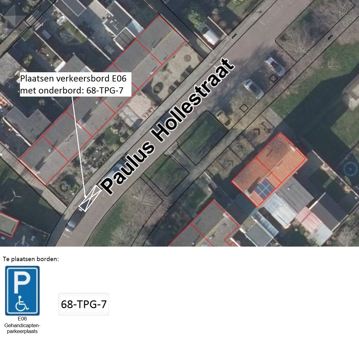 Het is dan ook gewenst om door het plaatsen van een verkeersbord model E06, met daaronder een onderbord met daarop het kentekennummer van het voertuig van de aanvrager, een parkeerplaats voor de woning aan de Paulus Hollestraat 3 te Oostkapelle te reserveren als gereserveerde gehandicaptenparkeerplaats en deze parkeerplaats te markeren.