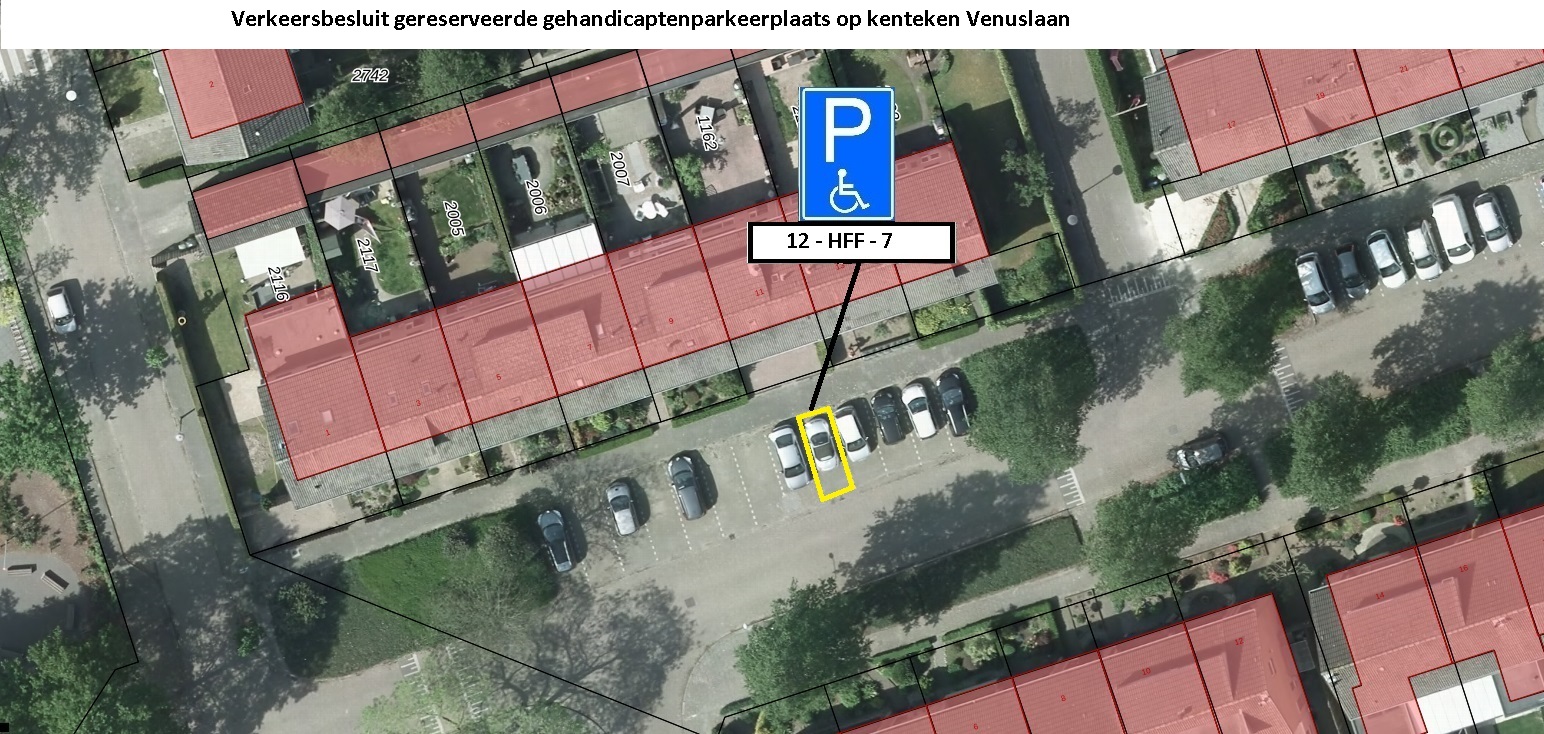 De gemeente heeft het verzoek ontvangen om een parkeerplaats aan de Venuslaan 11 aan te wijzen als gehandicaptenparkeerplaats op kenteken.