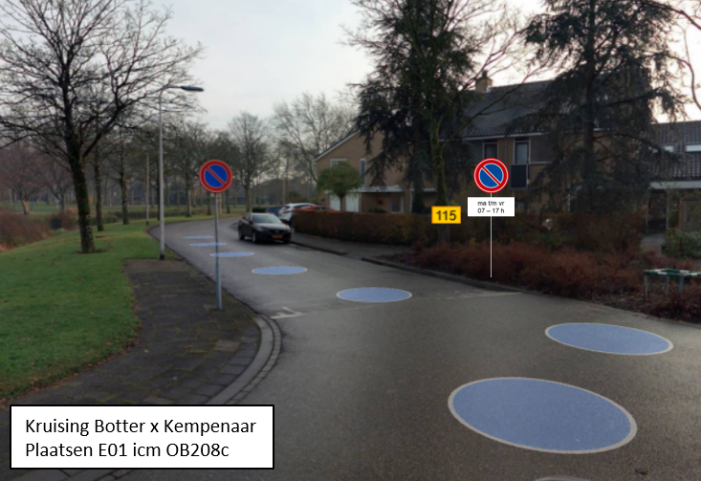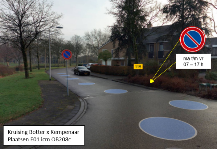 bord E01 met OB208c met tekst “ma t/m vr 7 – 17 h” conform bijlage 1 van het RVV 1990 op de Kempenaar, aan de zuidzijde van de rijbaan, ter hoogte van de kruising met de Botter, ter hoogte van huisnummer 115;