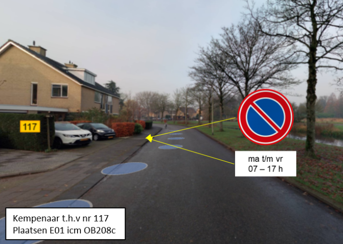 bord E01 met OB208c met tekst “ma t/m vr 7 – 17 h” conform bijlage 1 van het RVV 1990 op de Kempenaar, aan de zuidzijde van de rijbaan, ter hoogte van huisnummer 118.