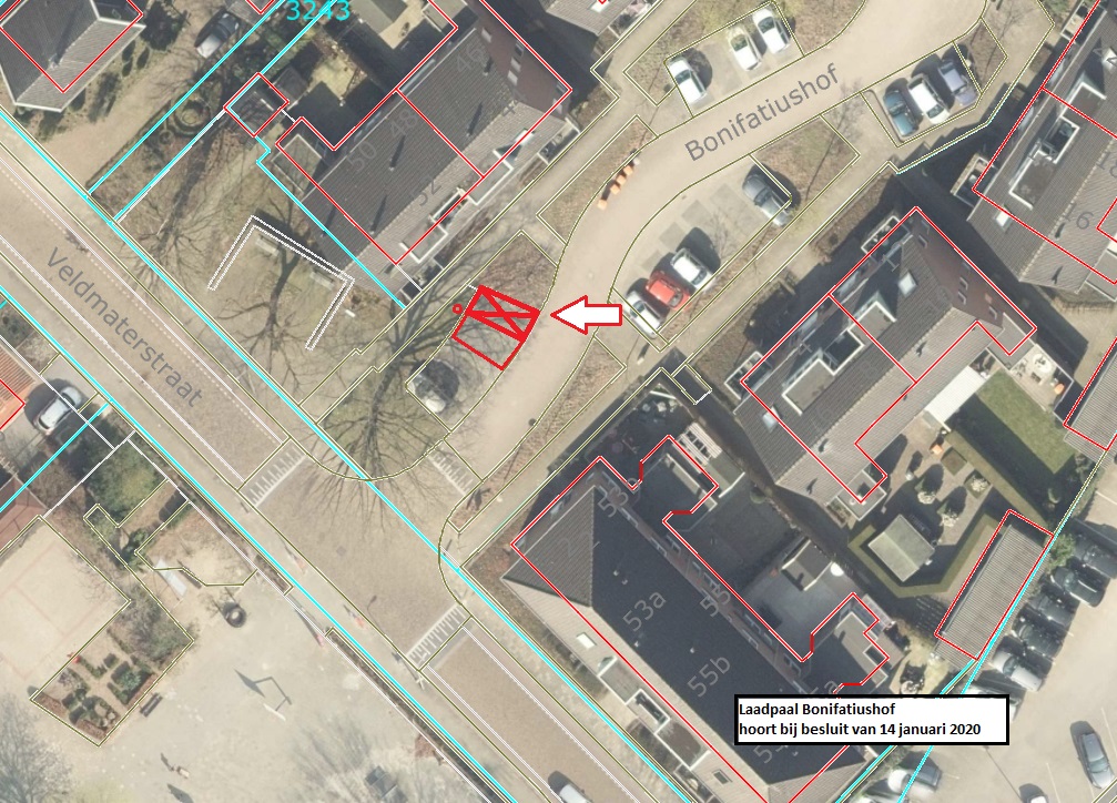 1. het aanwijzen van de op bijgevoegde tekening aangegeven parkeervak in de Bonifatiushof als parkeervak uitsluitend bestemd voor het opladen van elektrische auto's door het plaatsen van het bord E08 uit bijlage 1 van het RVV 1990 met onderbord "opladen elektrische voertuigen" met pijlbord naar schuin onder rechts;