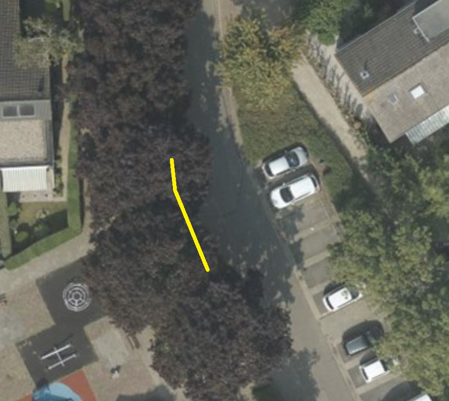 • dit kan worden bewerkstelligd door het aanbrengen van een gele onderbroken streep;