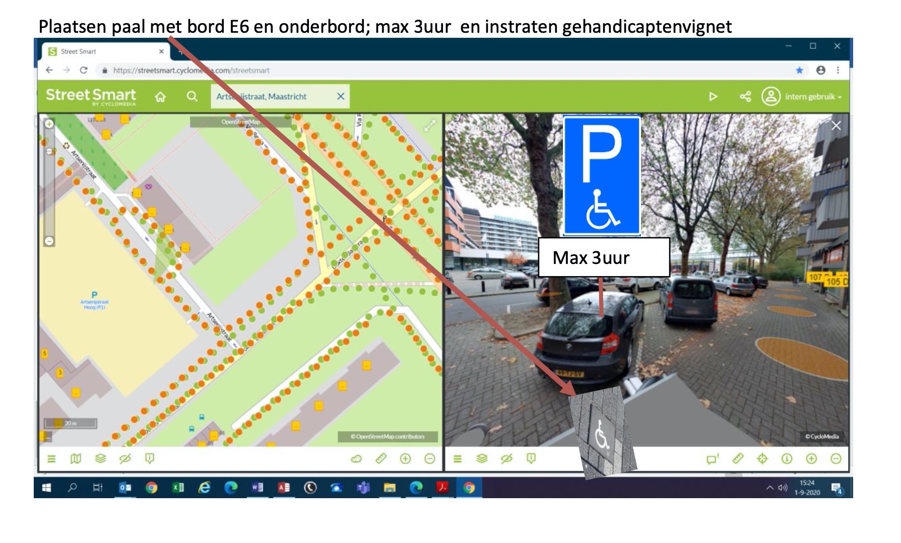 dat er ter hoogte van Via Regia 103 een algemene gehandicaptenparkeerplaats is aangewezen;