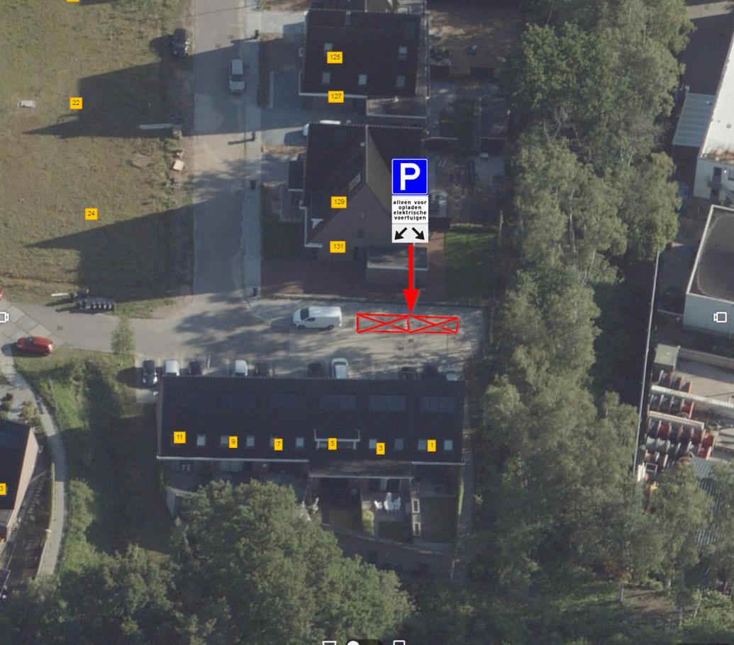 Er daarom twee parkeerplaatsen gereserveerd moeten worden ten behoeve van het opladen van elektrische voertuigen;