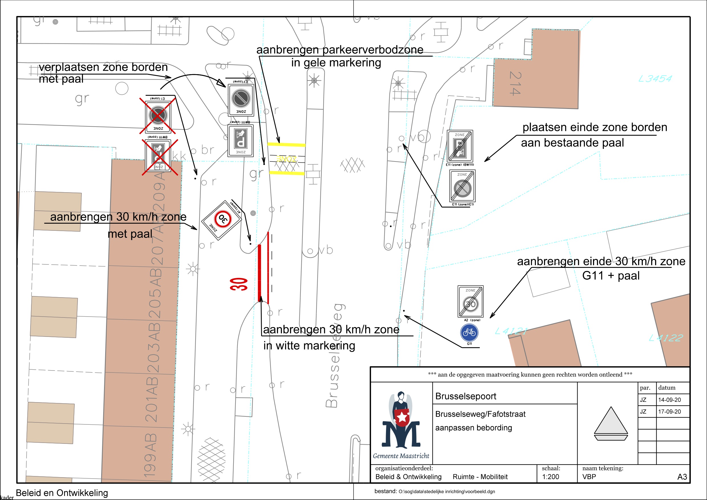 door het plaatsen van de borden A1(zone) en A2(zone) van Bijlage I van het RVV 1990 aan te wijzen als 30 km-zone in de wijk Brusselsepoort de ventwegen van de Brusselseweg ten zuiden van de Fagotstraat;