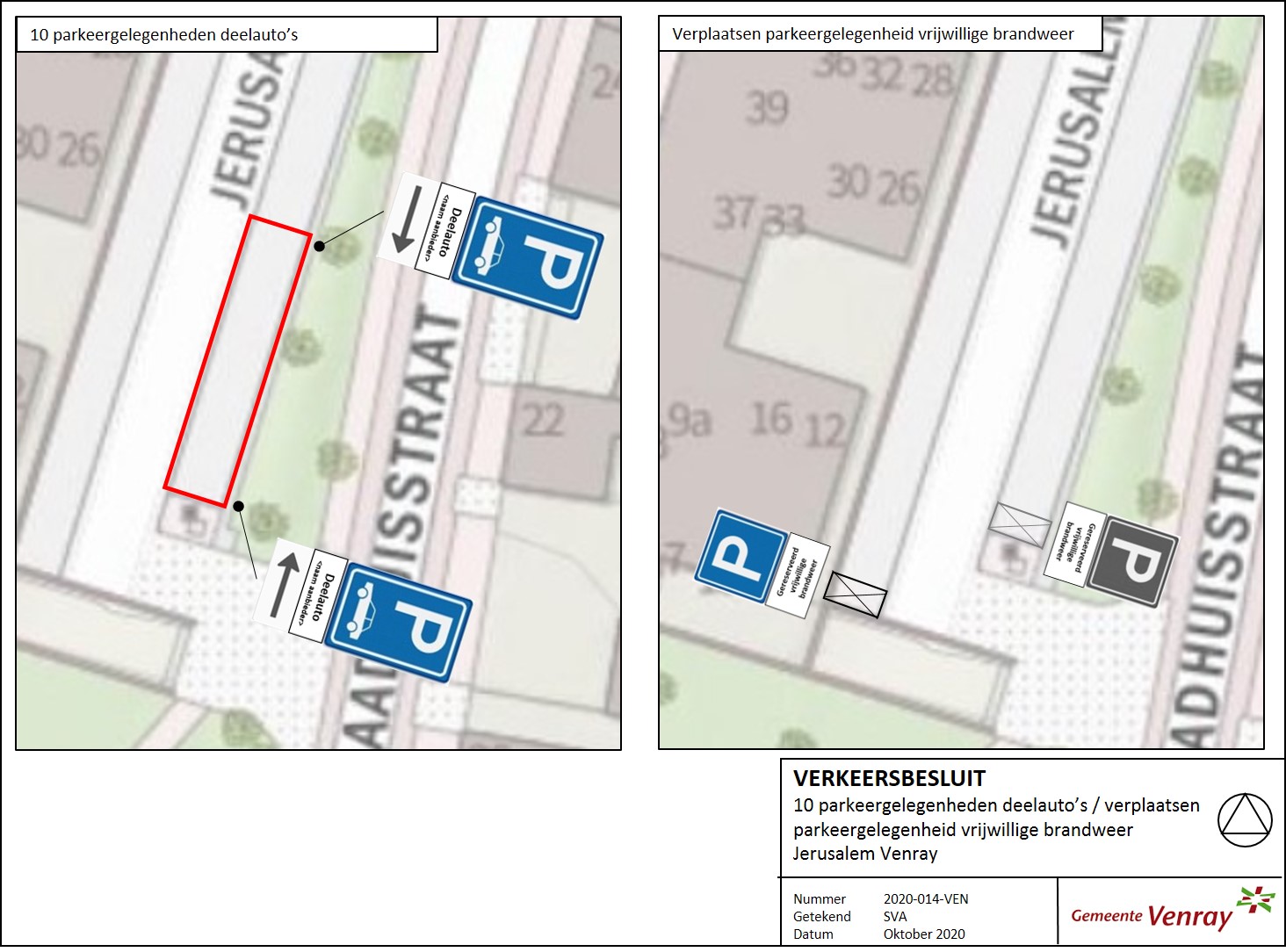 Verkeersbesluit – Vaststellen 10 parkeergelegenheden deelauto’s / verplaatsen parkeergelegenheid vrijwillige brandweer – Jerusalem - Venray