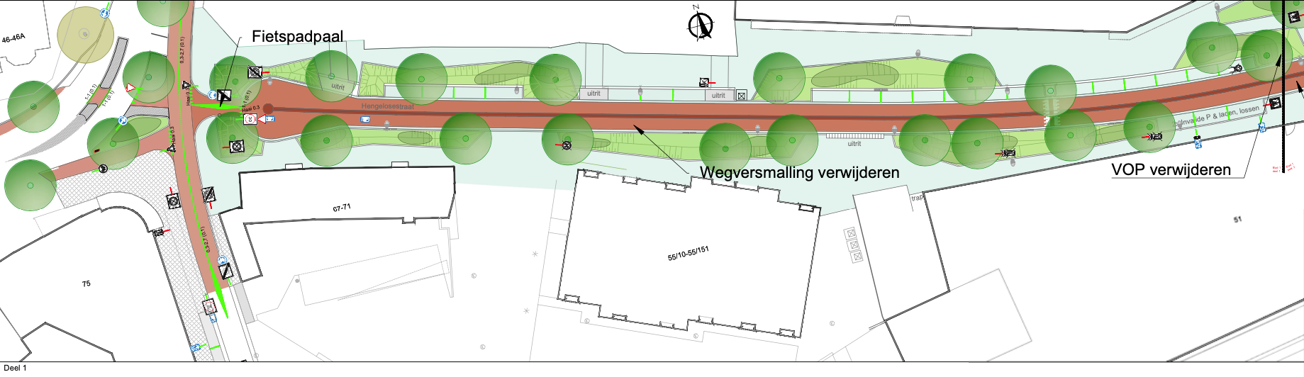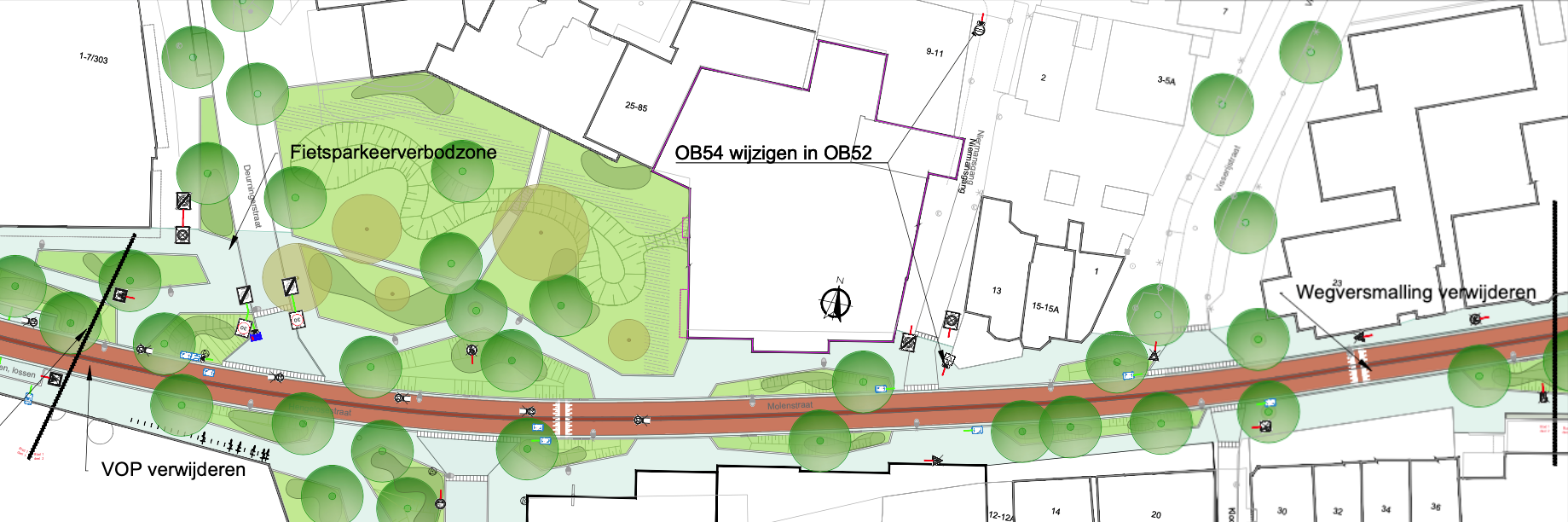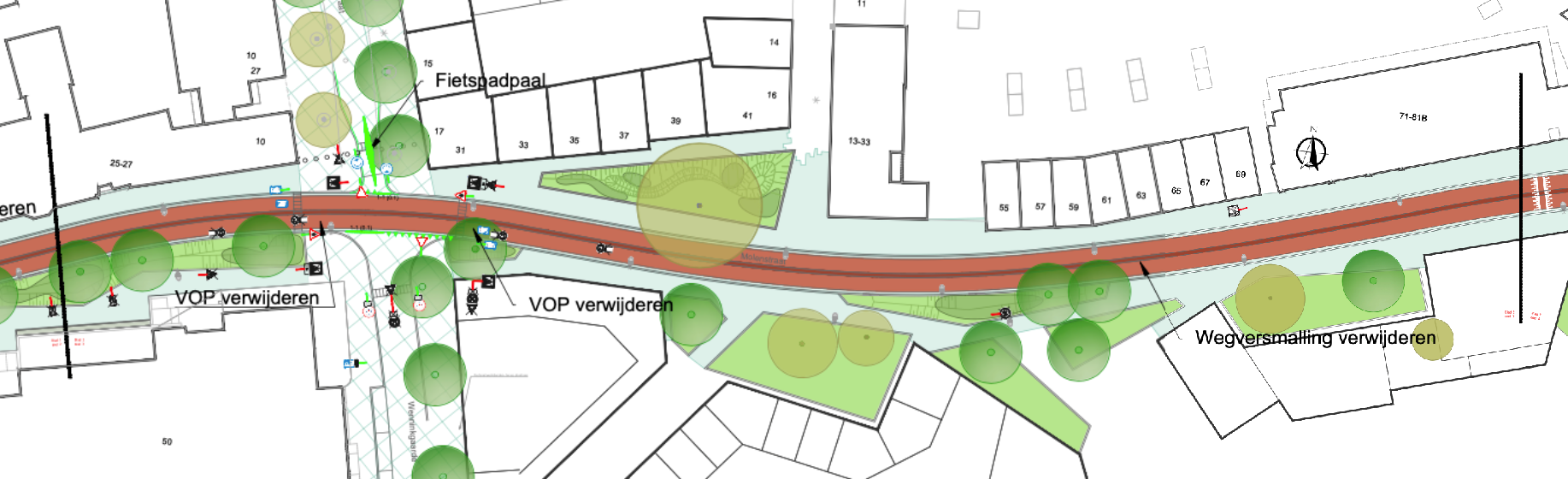 dat de fietsstraat (Molenstraat – Hengelosestraat) in de voorrang komt te liggen, dit gaat gerealiseerd worden middels het toepassen van een in/uitrit constructie op de zijwegen;