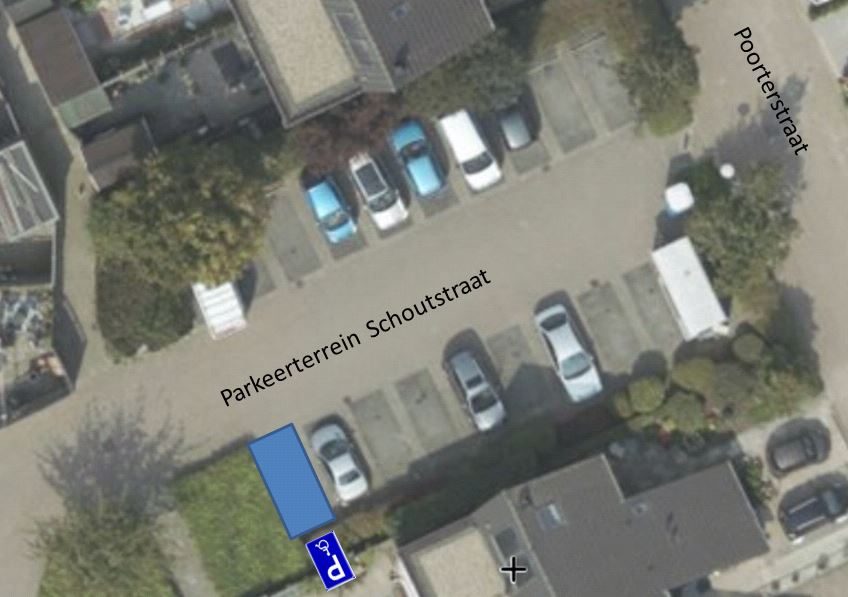 - tot het aanwijzen van een gehandicaptenparkeerplaats op kenteken ZB-829-X op parkeerterrein Schoutstraat, ter hoogte van Poorterstraat nummer 42, door het plaatsen van bord E6 (incl. onderbord met kenteken) van Bijlage 1 van het RVV 1990.