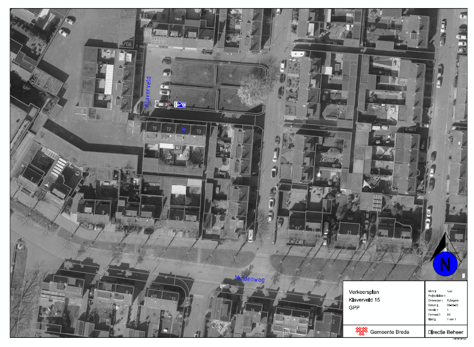 Een bewoner van het Klaverveld komt op basis van de ‘Beleidsregels gehandicaptenparkeerplaats op kenteken Breda 2019’ in aanmerking voor een gehandicaptenparkeerplaats op kenteken. Deze bewoner heeft hiervoor een aanvraag ingediend bij de gemeente. De aanvrager voldoet aan de eisen zoals opgenomen in artikel 2 van de beleidsregel om in aanmerking te komen voor een gehandicaptenparkeerplaats. Door een verkeersopzichter van de gemeente Breda is te plaatse bekeken welke parkeerplaats het meest geschikt is en voldoet aan de eisen zoals opgenomen in artikel 2 lid 3 sub e en f en artikel 6 van de beleidsregels.