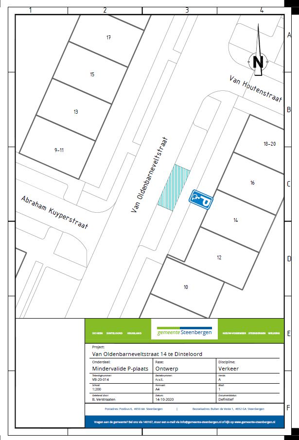 dat een verzoek is binnengekomen van …, wonende aan Van Oldenbarneveltstraat te Dinteloord om een persoonlijke invalidenparkeerplaats aan te leggen in Van Oldenbarneveltstraat, ter hoogte van 14.