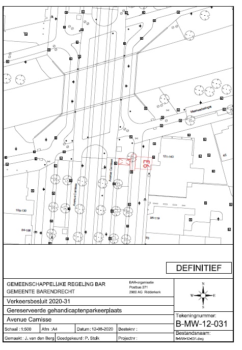 Instellen van parkeerplaats aangewezen categorie ten behoeve van het inrichten tot een gereserveerde gehandicaptenparkeerplaats aan de Avenue Carnisse te Barendrecht.