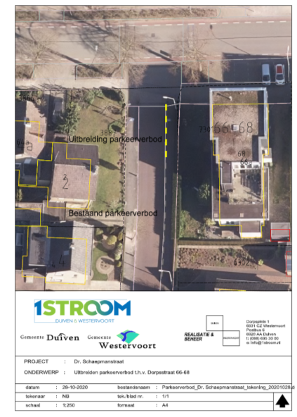 door het doortrekken van de reeds bestaande gele onderbroken streep een parkeerverbod instellen aan de Dr. Schaepmanstraat tussen de inrit vanaf de Dorpstraat en het reeds bestaande parkeerverbod aan de oostzijde van de straat;