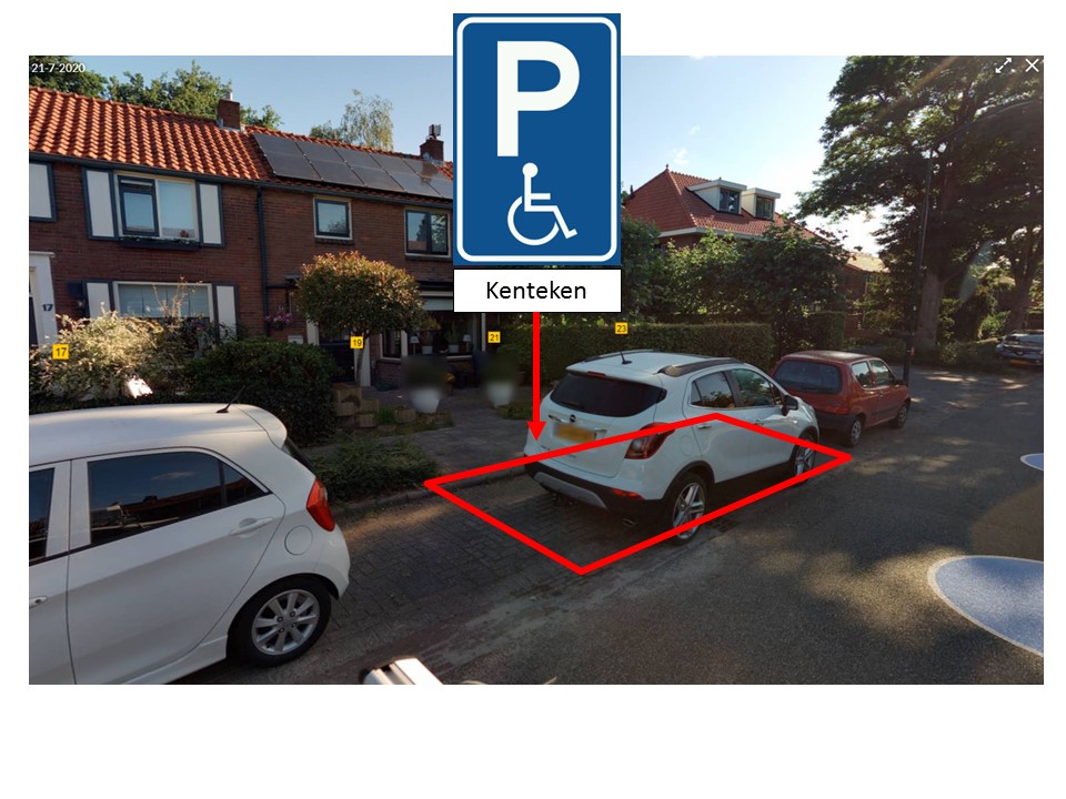 • een gereserveerde gehandicaptenparkeerplaats kan worden gerealiseerd door het plaatsen van het bord E6 ‘gehandicaptenparkeerplaats’ en onderbord met kenteken van de aanvrager;