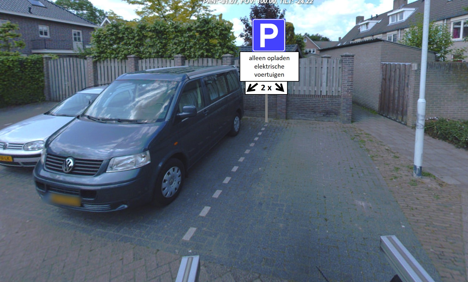 er daarvoor bij iedere paal maximaal twee parkeerplaatsen worden gereserveerd als parkeerplaats uitsluitend bedoeld voor het opladen van elektrische voertuigen.