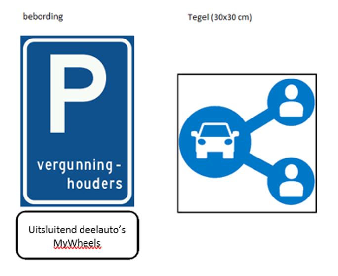 de bebording en autodeelplaats-tegel te plaatsen zoals aangegeven op de bij dit besluit behorende situatietekening.