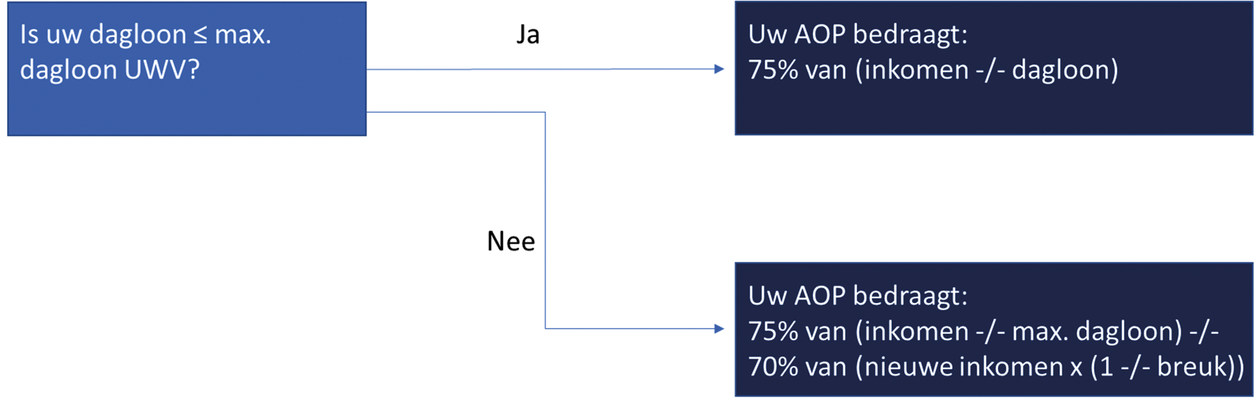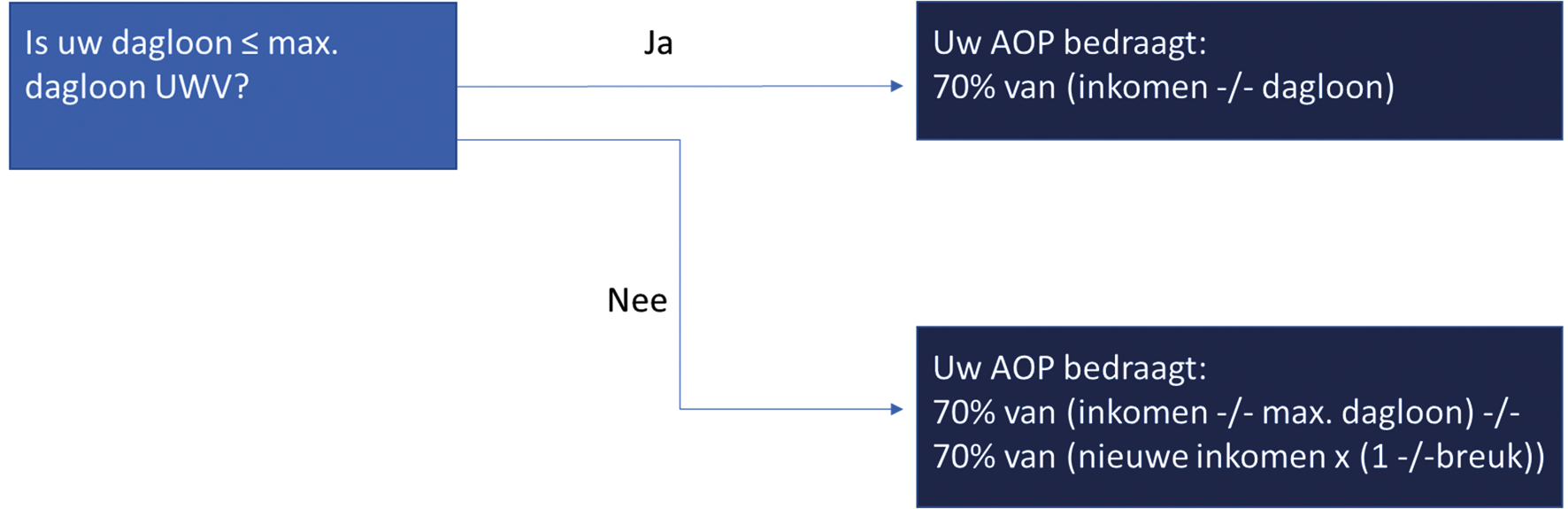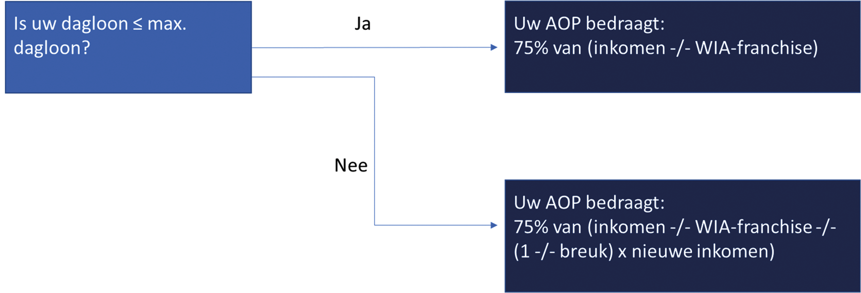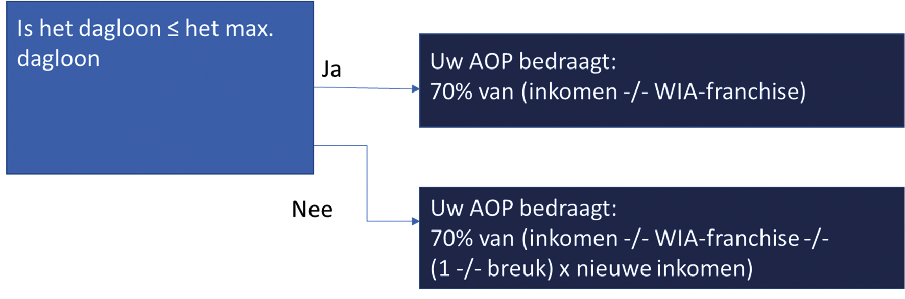 • Hiervan trekken we af: uw nieuwe inkomen, uw WAO-uitkering en uw invaliditeitspensioen.