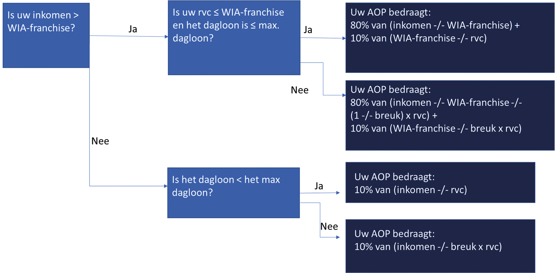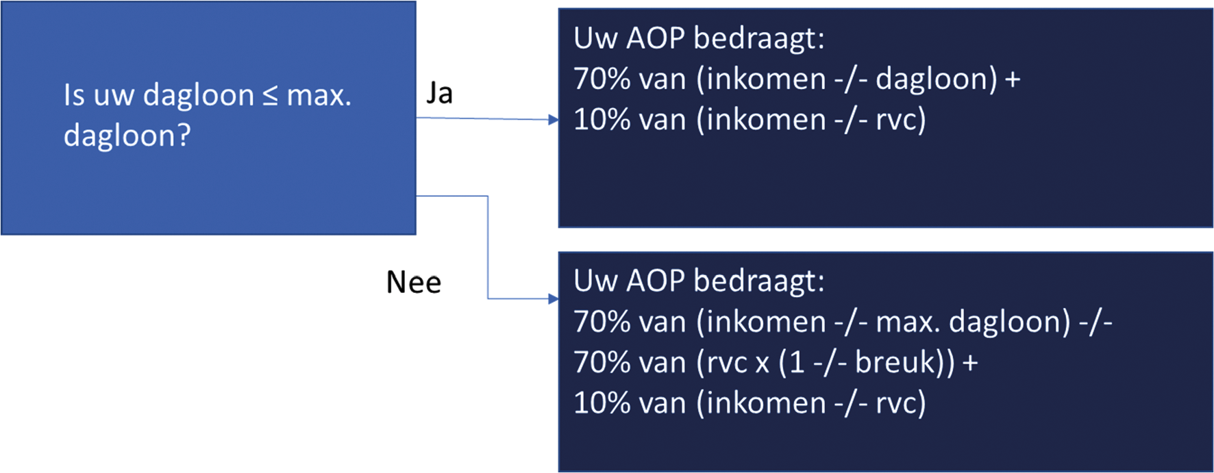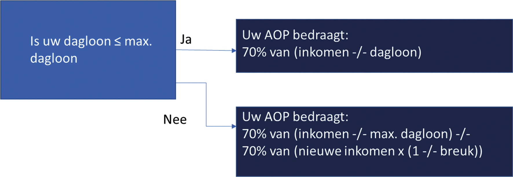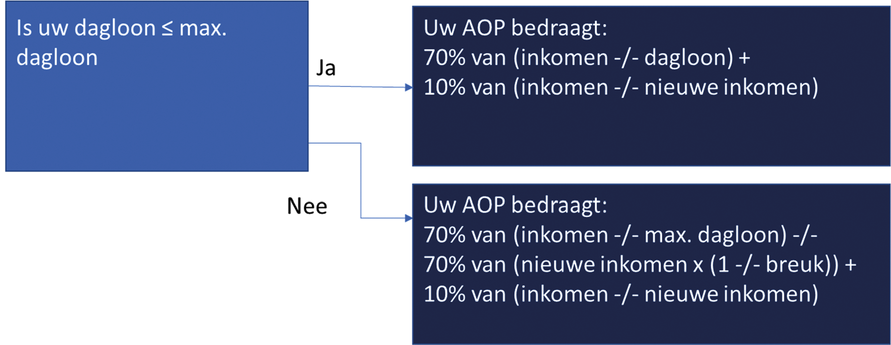 • Hiervan trekken we af: uw nieuwe inkomen, uw WAO-uitkering en uw invaliditeitspensioen.
