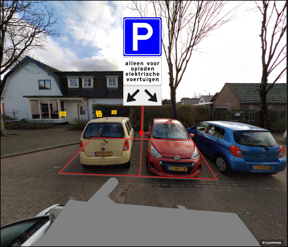 Er daarom twee parkeerplaatsen gereserveerd moeten worden ten behoeve van het opladen van elektrische voertuigen;