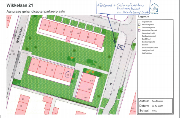 dat een verzoek is ontvangen om een gehandicaptenparkeerplaats op kenteken in te richten in de nabijheid van nabij Wikkelaan 21 (parkeerplaats Varenlaan);