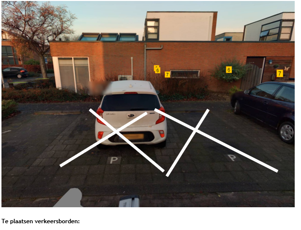 We brengen deze parkeerplaatsen aan in de Ridderspoortuin, tegenover nummer 5 in Bergschenhoek.