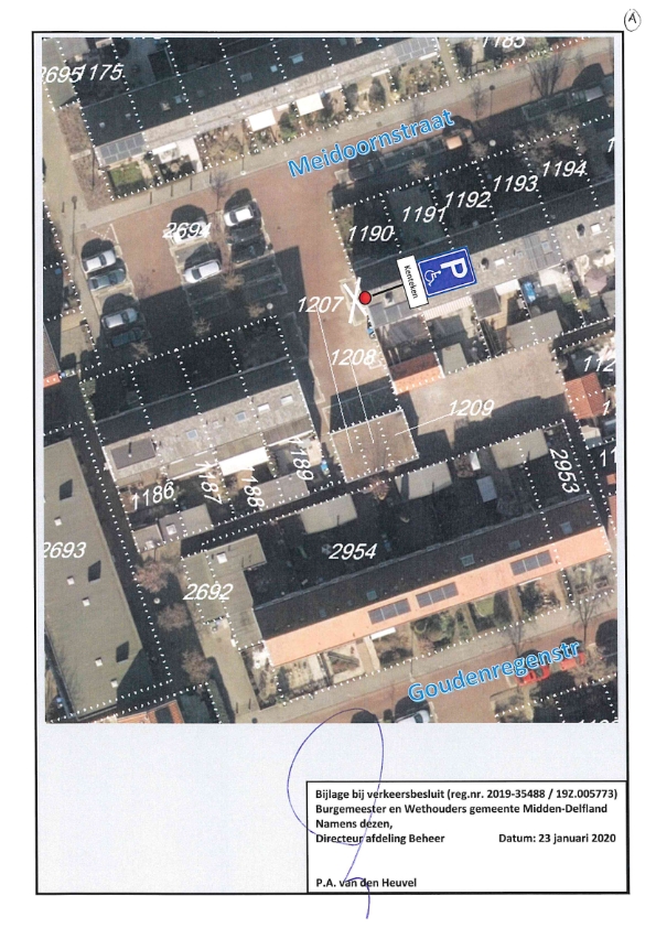 Gemeente Midden-Delfland - verkeersbesluit - gehandicaptenparkeerplaats - Meidoornstraat, Schipluiden