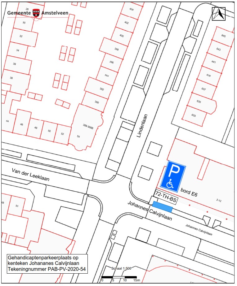Burgemeester en wethouders van Amstelveen besluiten het parkeren te verbieden op een parkeerplaats in de Johannes Calvijnlaan bij de kruising met de Lindenlaan, zoals aangegeven op tekening PAB-PV-2020-54, met uitzondering van het voertuig met het kenteken 72-TH-BS (gehandicaptenparkeerplaats).