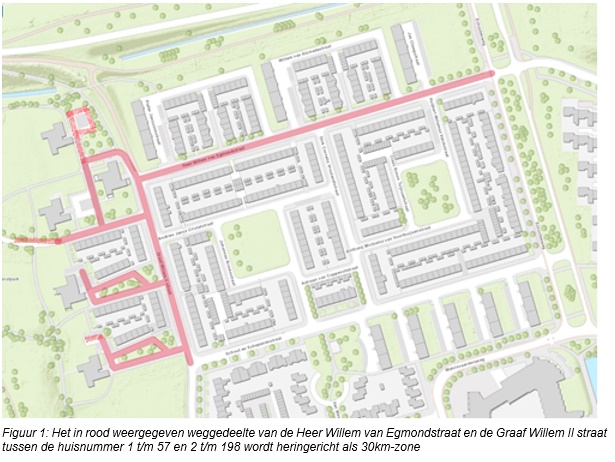 Aanhoudende klachten van inwoners aan de Heer Willem van Egmondstraat over te snel rijdend verkeer, in combinatie met de inrichting naar de landelijke richtlijn Duurzaam Veilig, zijn aanleiding om voor de Heer Willem van Egmondstraat en de Graaf Willem II straat tussen de huisnummer 1 t/m 57 en 2 t/m 198 te werken aan een oplossing voor deze problematiek. Door de reconstructie van de Schout en Schepenenbuurt in het kader van de gebiedsgerichte aanpak is er een mogelijkheid ontstaan om de geldende snelheid terug te brengen naar 30 kilometer per uur op de Heer Willem van Egmondstraat en de Graaf Willem II straat tussen de huisnummer 1 t/m 57 en 2 t/m 198.