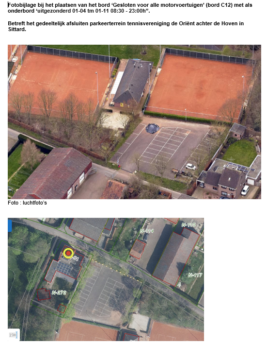 Gemeente Sittard-Geleen - verkeersbesluit - gedeeltelijk afsluiten parkeerterrein tennisvereniging de Oriënt - Achter de Hoven, Sittard