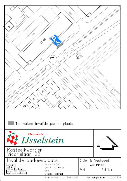 Een parkeerverbod ten behoeve van een gehandicaptenparkeerplaats in te stellen op een van de openbare parkeerplaatsen gelegen bij Vicarielaan 22 te IJsselstein, zoals aangegeven op de bij dit besluit behorende situatietekening;
