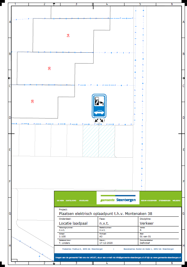 dat er een verzoek is ingediend voor het plaatsen van een oplaadpaal en het aanwijzen van 2 parkeerplaatsen voor het opladen van elektrische voertuigen aan de Montenaken te Steenbergen, conform bijgesloten tekening;