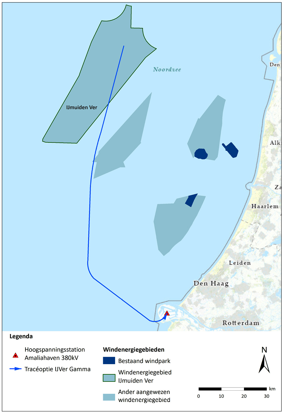 In het windenergiegebied IJmuiden Ver, zo’n 75 kilometer ten westen van de kust van Noord-Holland, worden windparken gebouwd. De elektriciteit van de windturbines komt samen op een converterstation (platform) op zee. Er wordt een ondergrondse hoogspanningsverbinding aangelegd tussen het converterstation op zee en het hoogspanningsnet op het vasteland. Dit project ‘Net op zee IJmuiden Ver Gamma’ omvat het onderzoek naar een tracé, de besluitvorming en de aanleg van de hoogspanningsverbinding vanuit zee naar een hoogspanningsstation op land op de Maasvlakte.