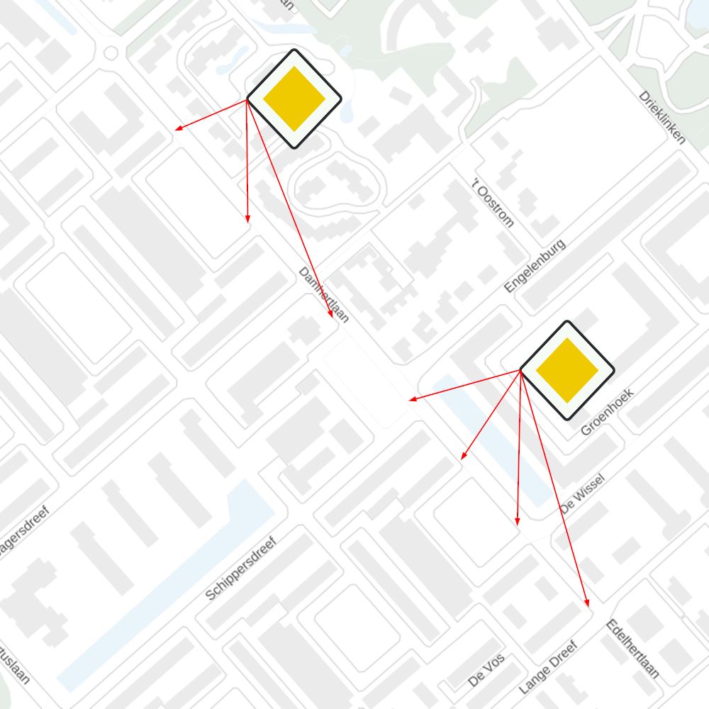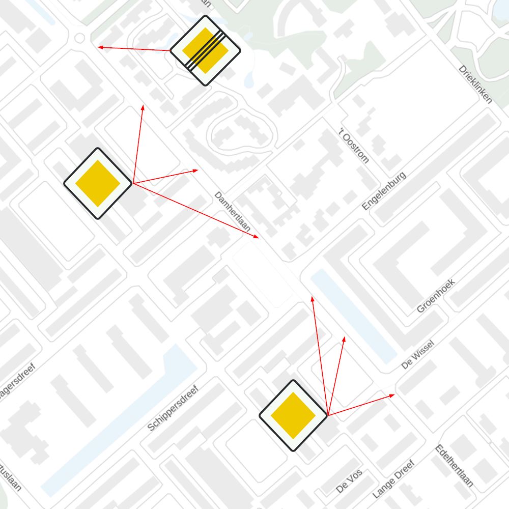 het gewenst is dat de kruisingen met de Damhertlaan geregeld worden door middel van een voorrangsregeling;