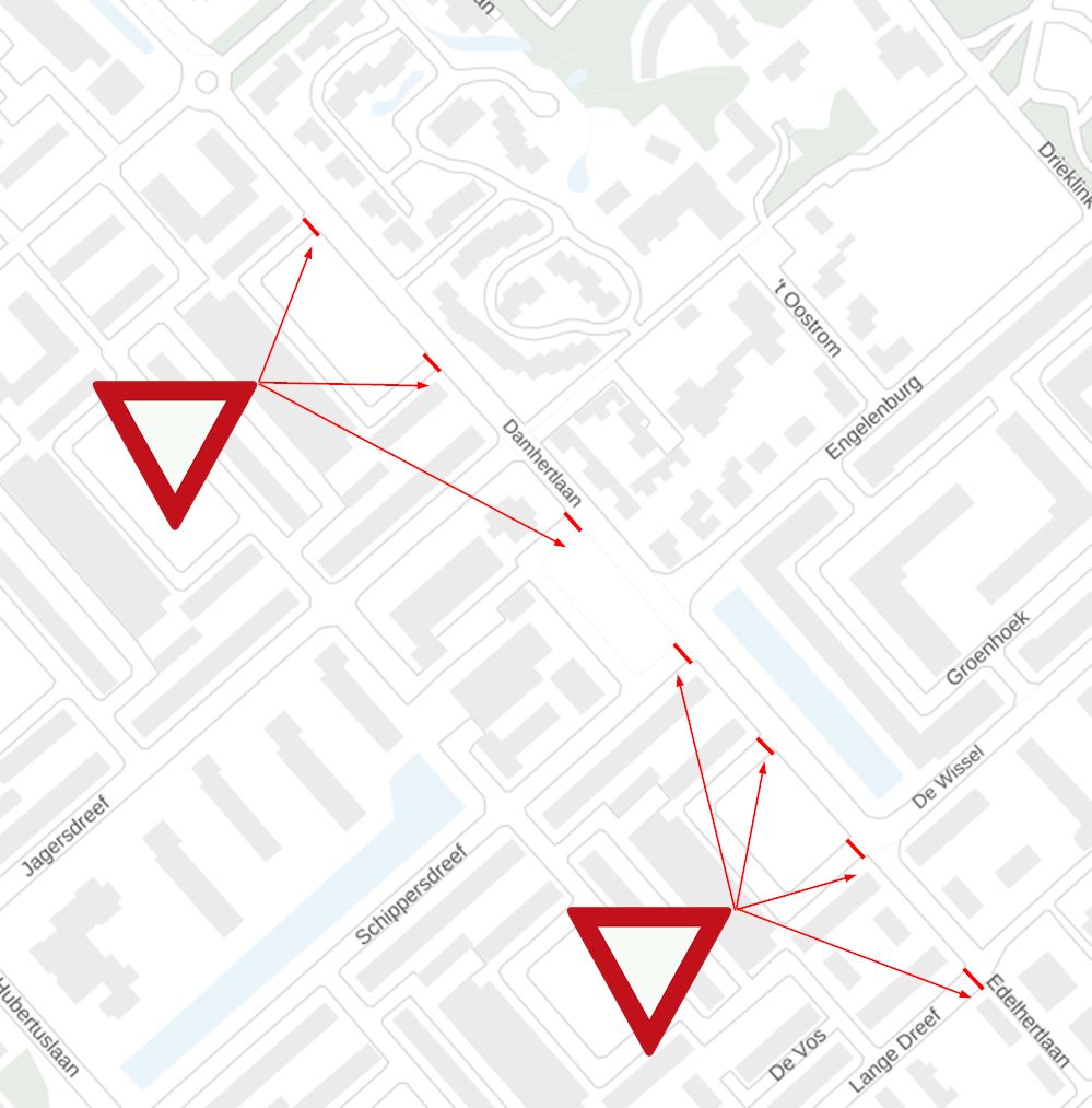 de kruisingen met de Damhertlaan momenteel gelijkwaardig zijn;