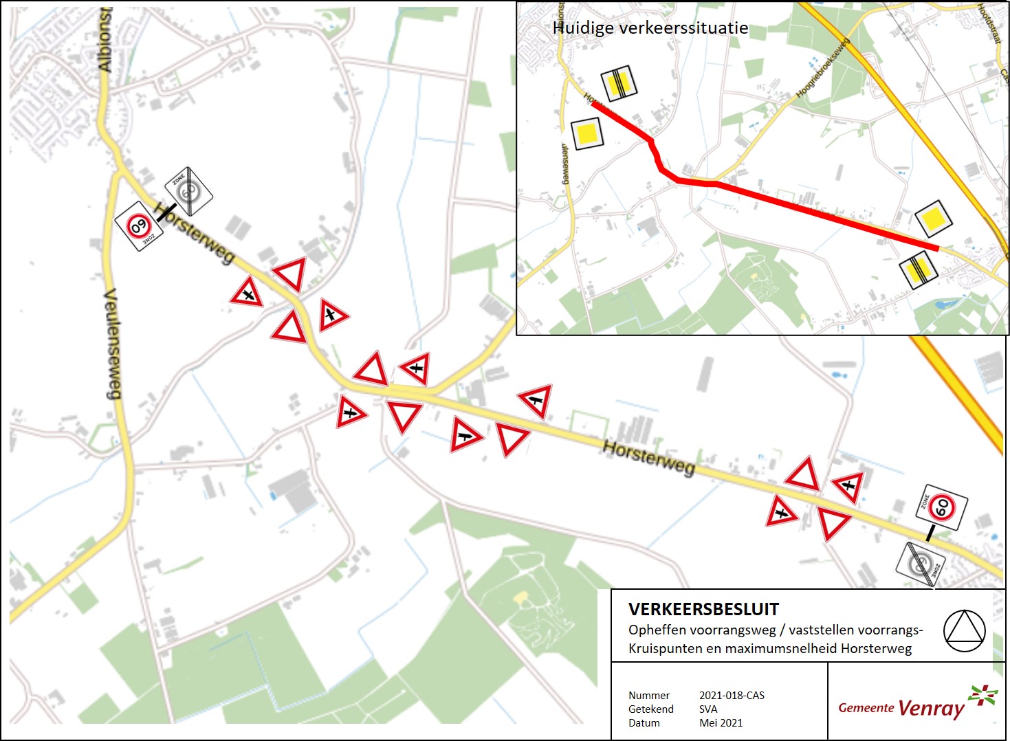 Verkeersbesluit – Opheffen voorrangsweg/Vaststellen maximumsnelheid en voorrangskruispunten – Horsterweg - Castenray