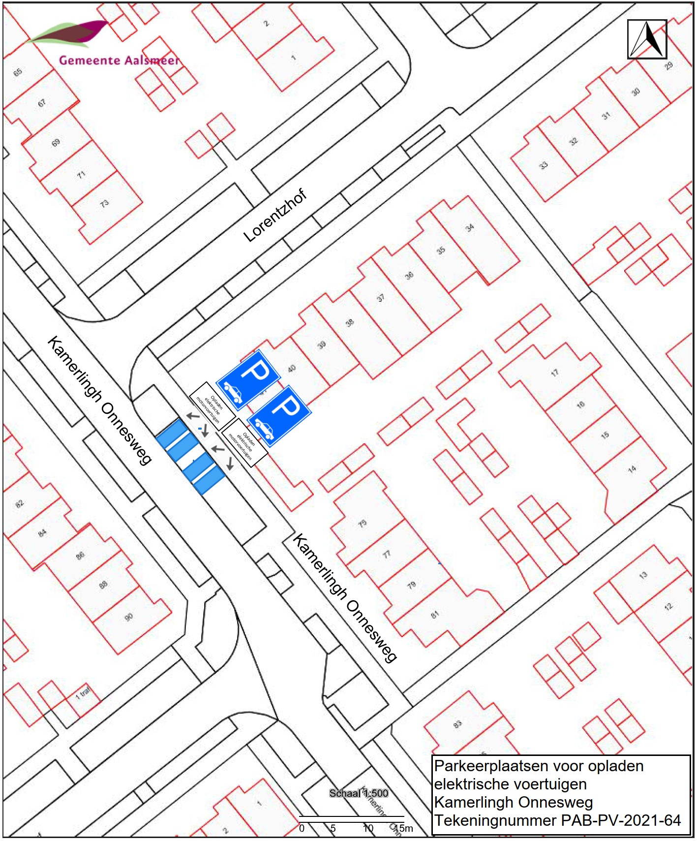 Burgemeester en wethouders van Aalsmeer besluiten om in de Kamerlingh Onnesweg vier parkeerplaatsen aan te wijzen als parkeerplaats voor het opladen van elektrische motorvoertuigen. De parkeerplaatsen mogen alleen gebruikt worden voor het opladen van deze elektrische motorvoertuigen.