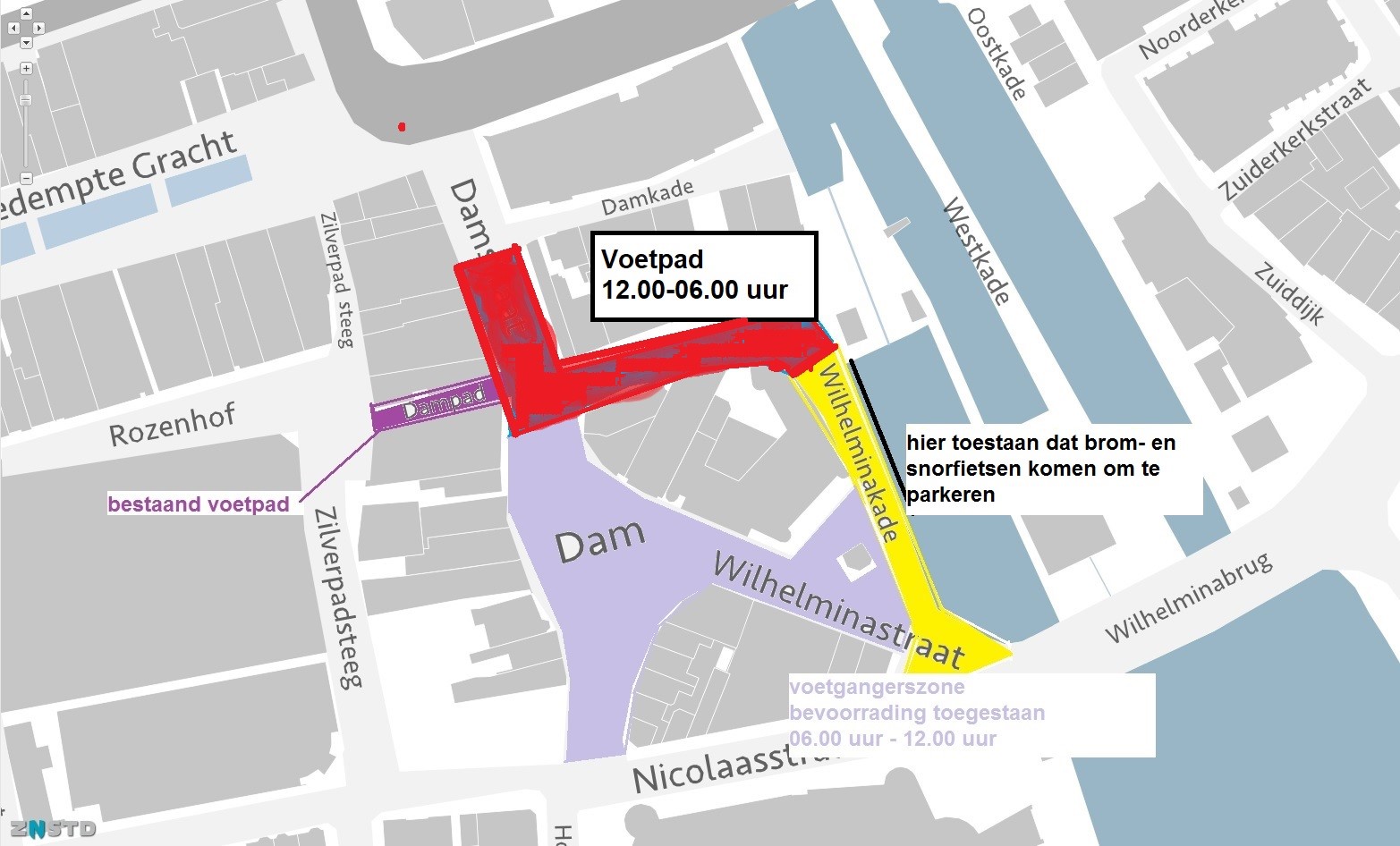 de Dam reeds als voetgangersgebied is aangewezen uitgezonderd tussen 6.00 uur tot 12.00 uur voor bevoorrading;