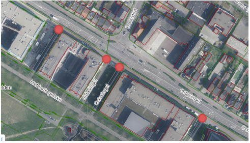 Foto 3 Indicatie plek waar borden dienen te worden geplaatst (rode cirkels)