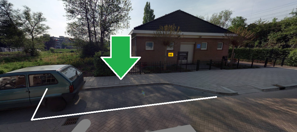 De parkeerplaats die wordt aangewezen is de dichtstbijzijnde parkeerplaats bij de entree van de zaal.