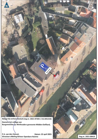 Gemeente Midden-Delfland - verkeersbesluit - opheffen gehandicaptenparkeerplaats op kenteken - 's-Herenstraat, ter hoogte van huisnummer 4, Maasland